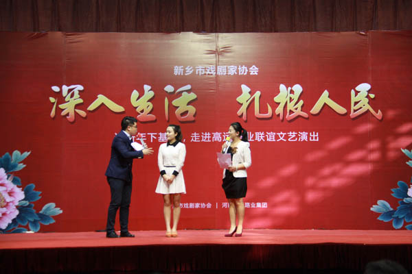 当天下午,高远公路养护技术有限公司的车间张灯结彩,一串串火红的大红灯笼,使原本冷清的生产车间洋溢着新年的喜庆氛围。舞台前方的大型公路养护车辆,和统一着装的工人师傅,使这次演出显得格外亲和。京剧《红灯记》、《穆桂英挂帅》等名剧名段被艺术家们表演的惟妙惟肖;豫剧《小二黑结婚》、《花木兰》更是赢得了满堂彩。高远路业工人贾坤【录音:以前没有这么多艺术家来到我们车间给我们慰问演出,今天看到这么多艺术家得劲、高兴、开心】高远路业工人岳学磊【录音:晚会的节目内容非常丰富,让我们意识到生活中有音乐的存在就有无穷的力量,让我们感觉特别鼓舞人心。】